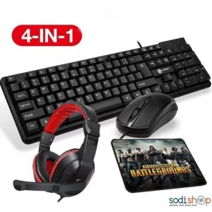 Pack Office 4en1 - Clavier Rétroéclairé + Casque Audio avec Souris et Tapis Antidérapant Pour PC Ordinateur SODIEXP01D